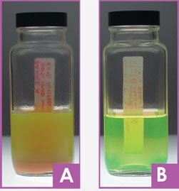 Note the separation of the water and antifreeze in bottle A. This shows the contamination formed from rust and silicates.
